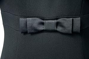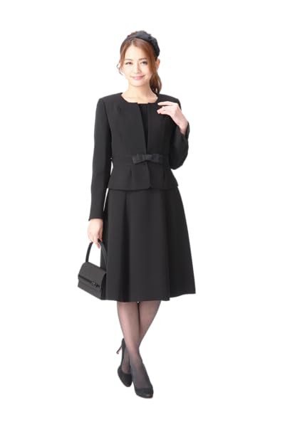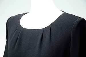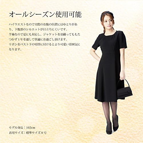 ジャケットとお揃いのタックで襟元が程良く飾られお顔が引き立ちます。 楕円形のネックラインなのでデコルテが美しく映え、首がすっきり長く見えます。 ハイウエストの幅広の切替が体にフィットするのでウエストが細く引き締まって見えます。 襟元とハイウエストという高い位置にポイントがあるので目線が上がり、ウエスト切替から裾に掛けての広がりで脚がすらりと長く印象付きます。 裾周りがとても広いので歩いても引っかからず、長時間座っていても余裕があり快適です。 ハイウエストなので実際のお腹の位置にはゆとりがあり、下腹部のシルエットが目立ちにくいです。 半袖なので夏にも対応し、ジャケットを羽織ってももたつかず1年を通して快適にお過ごし頂けます。 リボンをバスト下の切替に付けるとより可愛い雰囲気になります。