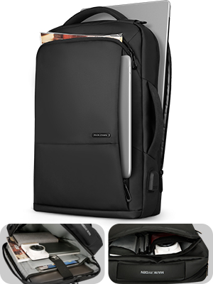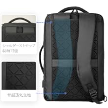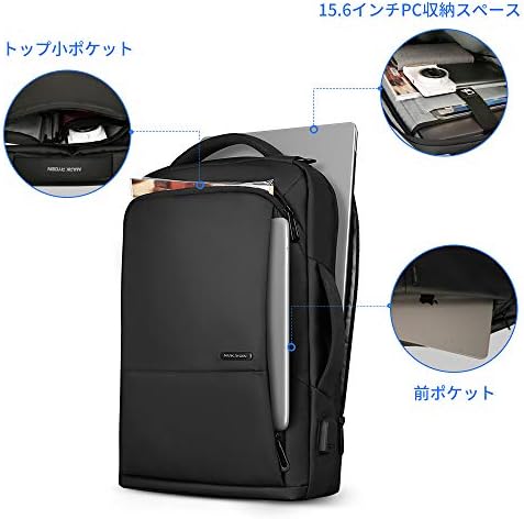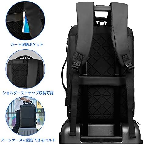 【多機能のデイパック】上部にある頑丈なハンドル;カード用のジッパーポケットとサングラス用ストラップが付いた調節可能なパッド入りショルダーストラップ;スーツケースに簡単に使える荷物ストラップ付き;便利なUSB充電ポート。男性にも女性にも最適な機能性出張用ノートパソコンバッグです。また、カジュアルな通学用バッグとして学生の男女にも最適です。