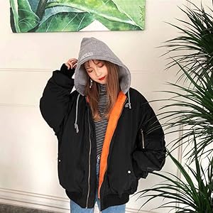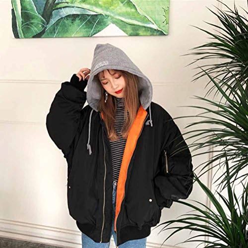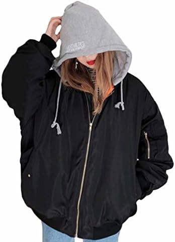 MengFan レディース MA-1ジャケット 春 長袖 ブルゾン 無地 フード付き 野球服 ミリタリージャケット ゆったり カップル アウター 韓国風 ファッション ペアルック