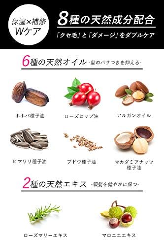 From hair repair to film care: Contains 6 types of natural oils, jojoba seed oil, rosehip oil, argan oil, sunflower seed oil, grapevine seed oil, macadaminut seed oil, and 2 types of natural extracts, rosemary extracts, and mallonier extracts. This allows it to penetrate the interior of the hair and further repair and care for the surface of the hair.