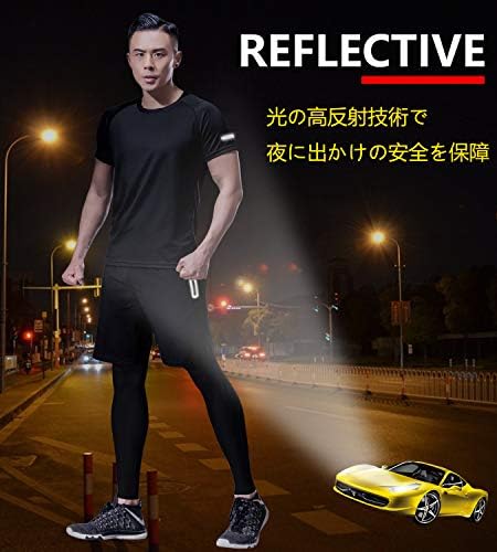 Practical Design: Design 1: The shorts have pockets on both sides, so you can put your smartphone or wallet. The elastic belt has strong elasticity, comfortable and snug fit. Design 2: Short sleeve T-shirt, left sleeve cuff, 2 front pockets and coat zippers are all designed with a shiny design for added safety when outdoors. Design 3: The belt of the compression pants is designed with elastic elastic. The wide waistband won’t dig into your waist and gives you a secure fit without pinching your tummy.