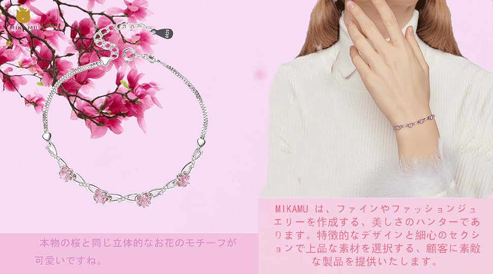 ❤め込まれている、桜色の輝きが放つし、桜みたい、可愛いなブレスレットの魅力がもっと強く表現させます。