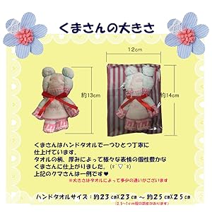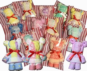 ☑ 色・柄はお任せください、可愛いタオルをセレクトし12個セットにしています。一つひとつ丁寧にくまさんに仕立てています。ふっくらくまさん、ほっそりくまさん、色柄やタオルの厚さで個性の違うくまさんの出来上がりです。ただいま新規デザインに移行中のため画像にはないデザインのものが含まれています。どれも厳選されたかわいいデザインをお届けしますのでお楽しみにしてください。※6個セットもご用意しています。
