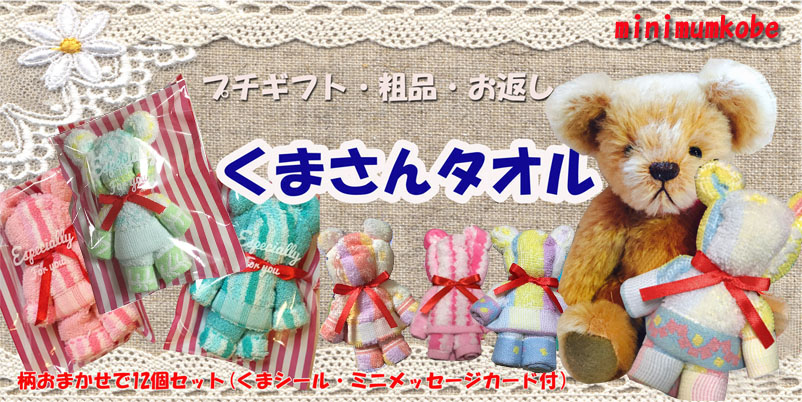 minimumkobe タオル ハンドタオル タオルハンカチ 12個 セット 結婚式 退職 誕生日 お返し 粗品 プチギフト くま タオルベア 柄おまかせ