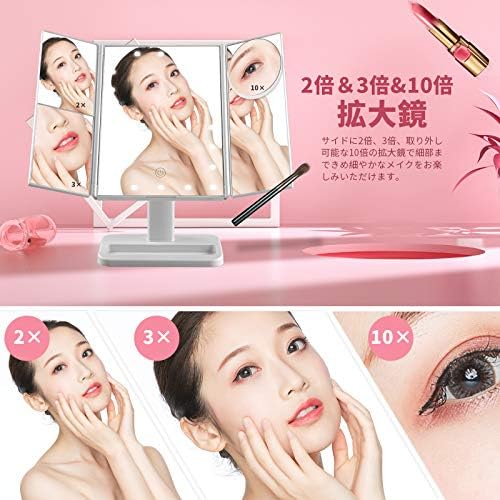 (2x & 3x & 10x Magnification) Actress mirror with 2x & 3x & 10x magnification, this is a large three-sided mirror that will satisfy your makeup and hairset. Even those with poor vision can use makeup or hair set without glasses. 2x, 3x and 10x detachable magnifier on the sides for detailed makeup It is a very convenient item for women who apply makeup from day to day, and it looks very stylish