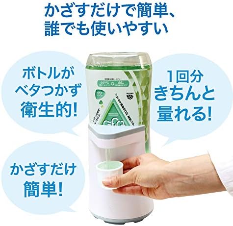 コップをかざすだけで、自動で1回分(約20mL)が出てくるのでとても簡単。使いすぎを防ぎます。