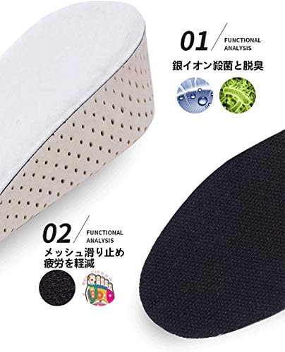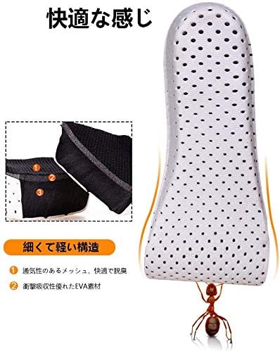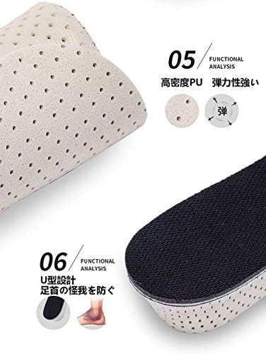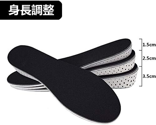 【サイズ調整が自在】フリーサイズ:約22.5~27cm。(長さ27cm×幅8cm) インソール裏のガイド線に沿ってハサミでカットして簡単にサイズ調整できます。 高さは選べる4サイズ:1.5cm、2.5cm、3.5cm、4.0cm。1.5cmはスニーカー、2.5cmはハイカットシューズ、3.5cmと4.0cmはブーツに適しています。(2.5cm、3.5cm、4.0cmはローヒールには使用できません)お手持ちの靴に中敷 として入れるだけでお悩みを一瞬で解消する、シークレットインソールです。