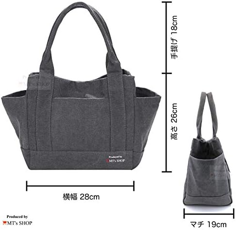 【カラー】: グレー【メイン素材】: 表面生地:キャンバス / 裏面生地:ポリエステル【サイズ】: 横幅 28cm 、 高さ 26cm 、 マチ 19cm 、 手提げ 18cm【重量】: 470g【ポケット数】:外側:サイドポケット x2 / オープンポケット x1 / 内側:メインポケット x1、ファスナーポケット x1、オープンポケット x2【付属品】:プルリング付き スライダー式 チャック袋 1枚・【チャック袋サイズ】: 20 x 15cm ※「 MT’s SHOP 」は 商標登録 第6122480号 により特許庁を通じ 商標権(第35類)を取得しております。