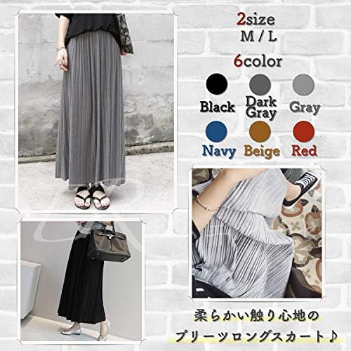 Introducing a long pleated skirt that is soft to the touch. The vertical lines are included for a clean silhouette and a slimming effect. You can expect a slimming effect with a beautiful silhouette. The simple design makes it great for mixing and matching outfits according to your mood of the day. The wide range of outfits is a must-have item that you would like to have. The elasticity makes it very comfortable to wear. The wind and sways flutly, giving you a silhouette overflowing with femininity. ◎ Elastic waistband. The design is stress-free even when worn for a long period of time. Not only is it easy to go out, but it can also be used as loungewear. The length can be adjusted to the position of the waist. You can choose the length according to your height and desired dress; The elastic waist is wide so you can mark your waist when you put it in the top, and you can expect a slimming effect. It is also gentle on pregnant women, so it can also be used as maternity wear or mother.