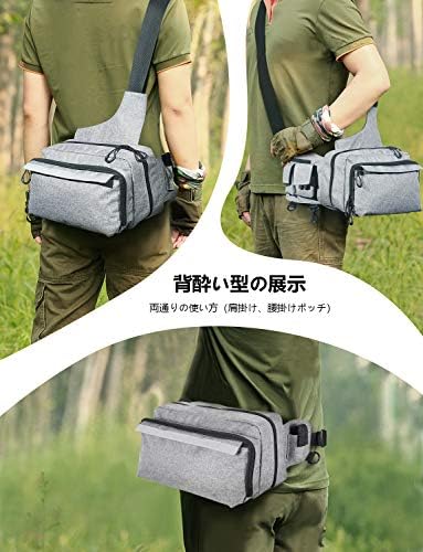 【3WAY持ち方】利用シーンに応じて便利な【ウェスト/肩掛け/手提げ】の3WAY使用が可能!渓流釣り、堤防夜釣り、船釣り、海釣り、ショアジギング、ウエストバッグ、カメラバッグ 、ショルダーバッグ、道具収納バッグ、ハイキングピクニック、釣りの小物入れなどに最適する多機能釣り用バッグ。日常生活中で、収納バッグ ツールバッグ ボディーバッグ チェストバッグ ウエストポーチ ショルダーポーチも楽しいです。