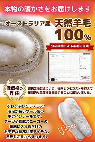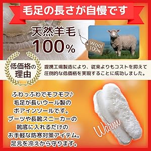 ✅【 ❗やみつきになる極暖ボアインソール ❗】寒い季節の防寒に この上なくオススメする、オーストラリア産天然ウール100%の とにかくあたたかい 極厚インソールです。ふわふわ、モフモフの暖かさで、ブーツや長靴、スニーカーの中に入れて履くと、暖かい空気を含んで保温するとともに、外気の冷たさからも守ってくれます。 吸湿性があって、蒸れたり 汗冷えしないので、冬のアクティブシーンなど、汗をかくけど気温は低い という場面に最適です。 女性用サイズ、男性用サイズも揃えております。
