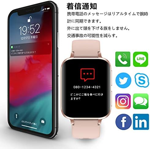 ✅【メッセージを見逃さない通知機能】スマートウォッチの通知機能について、電話着信の通知はもちろん、LINE、Twitter、Skype、メッセンジャー、Gメール、インスタグラム、アメーバなどのSNS系の通知でも、振動でお知らせしますので、直ちに手元に確認でき、重要な連絡を見落としません。