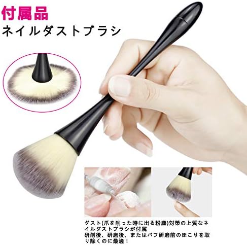 IPX6防水設計+ネイルダストブラシ付き:IPX6防水仕様で、濡れた手でも、お風呂や洗面所など水のある場所でも安心に使えます。またダスト(爪を削った時に出る粉塵)対策に、上質なネイルダストブラシが付属します。研削後、研磨後、またはバフ研磨前のほこりを取り除くのに最適!