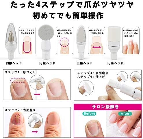 仕上がりはサロン級輝き:妊婦さん、職業上ジェル・マニキュアができない方に、ネイルサロンに行くお金と時間がない方に、立派なネイルは似合わない方にもお薦めです。!1本電動ネイルケアキットあれば、自宅で簡単にサロン級の輝きを維持することができます。家族みんなで使うこともできます。マニキュアを使わなくても、トップコートを塗ったような光沢がでるので、子供や妊婦にも安心してご使用いただけます。