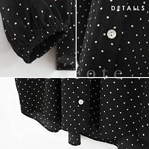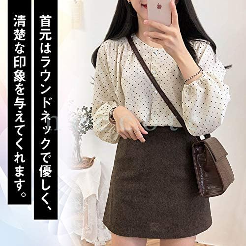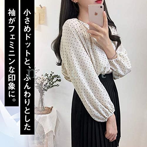 A simple and easy-to-use design of this cut-and-sew blouse. The small dots and front buttons and fluffy sleeves give a feminine look. The round neck is gentle on the neck, and the décolleté is not too visible, giving it a neat impression. This blouse can be worn in various occasions from office to private use.