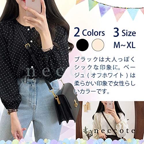 Available in 2 colors: classic black and beige. Black gives a mature and chic look. Beige (off white) has a soft and feminine color. The retro dot pattern goes well with old or vintage clothing.