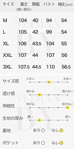 Size: Length (Short part) / Shoulder width / Bust / Sleeve length (Medium) 41.9 / 15.7 / 37.0 / 21.3 inches (104 / 40 / 94 / 54 [Large] 105 / 42 / 99 / 54 [XL] 107.5 / 44.5 / 11111111 / 111111 0/56. 5