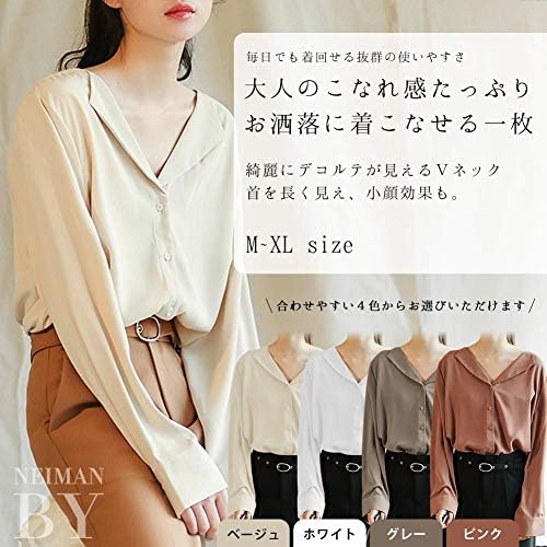 It has a mature and mature feel, and can be worn as a fashionable outfit. This is a beautiful slender blouse with a skipper design. Outstanding ease of use that can be worn every day. Elevate your style with this popular skipper shirt. A mature and mature look. The collar is only attached to the front, so the back is neat and tidy. Lightweight and comfortable to wear. The v-neck design makes it look beautiful and decollete for women. It makes your neck appear longer and makes your face look smaller. In addition, the back length is longer so you can naturally cover your body shape around your hips and stomach. Recommended as maternity wear for pregnant women.