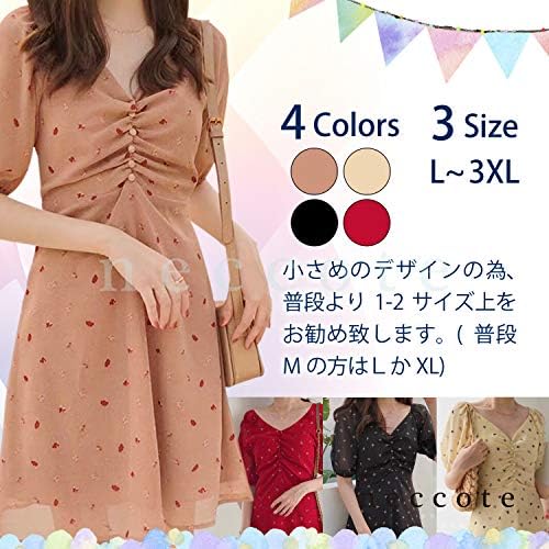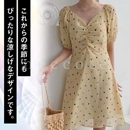 Puff sleeves give a glamorous impression.The neck has a v-neck for a beautiful décolleté line.High waist design makes your legs look longer and slim.