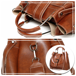 特徴:ハンドバッグ、財布ショルダー、ポーチ3点セット。カジュアルさがありながらきちんと感も演出してくれるアイテムです。高校生からオフィスレディースまで人気がある。バッグの底に鋲が打ってあるので、地面との摩擦を減少されて、置いた時に底が汚れにくくなっています。軽くて、汚れてもささっと拭けば取れてしまう安心の機能性。通勤、通学、デートやお出かけなどの場合に活躍できます。