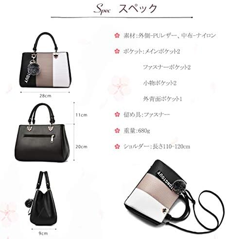 NICOLE&DORIS 爽やかなハンドバッグ 斜め掛けバッグ ファーチャーム かわいい ポンポン 鞄 シンプル ショルダーバッグ レディース 通勤 デート PU