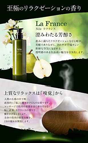 【豊潤なラフランスの香り】 Nile の代表的なフレグランスである「La France」の香りを配合。 ラグジュアリーホテルに漂う、華やかで洗練された香り。ラフランス、ミュゲ、ムスクなどが、透き通る爽やかさと、魅惑の華やかさを演出します。
