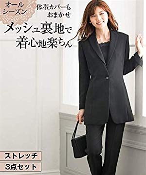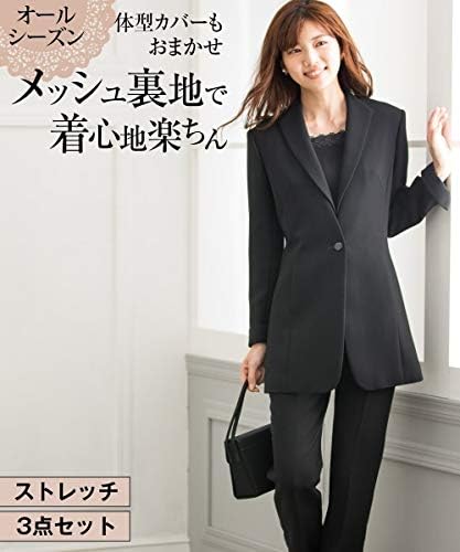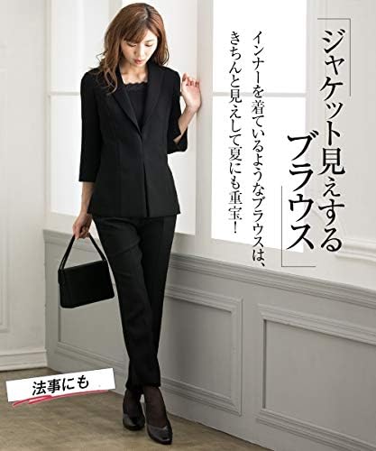 すっきりとしたカラーレスジャケットは気になる部分をカバーできる長め丈。衿付のブラウスは前ホックを開けるとオープンファスナー開きなので、着脱がラクチン!ジャケットにブラウスの衿を出して着合わせると、すらりとしたイメージで着こなせます。9分丈パンツは腰回りにゆとりがあり、裾に向かって細見えがかなうテーパードシルエット。ブラウスとパンツだけでも、暑い時期にきちんと感のある装いができます。