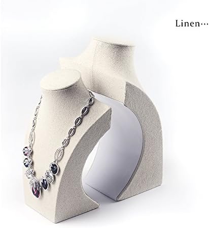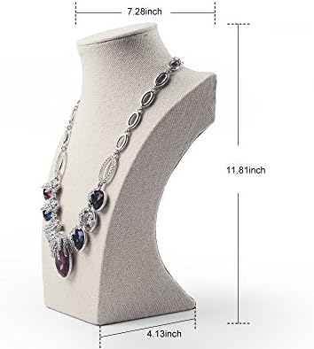 Oirlv Linen Necklace Display Bust Jewelry Display Stand 3D Necklace Organizer (Height 30CM)