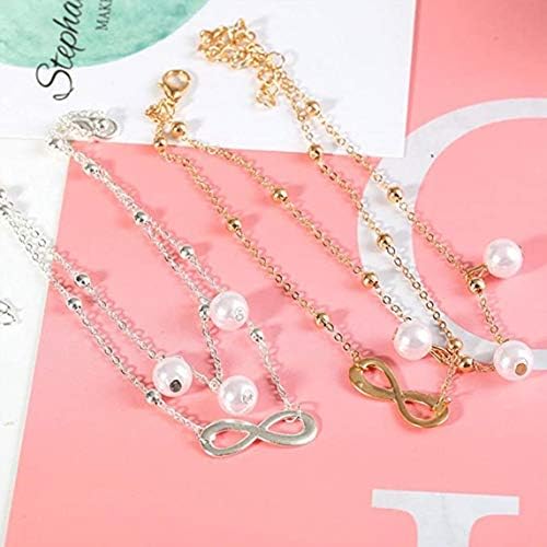 OKAYOU ファッションホットパールアンクレットジュエリー女性ハンドビーズダブルチェーンシューズビーチシューズファッションシンプルで寛大な