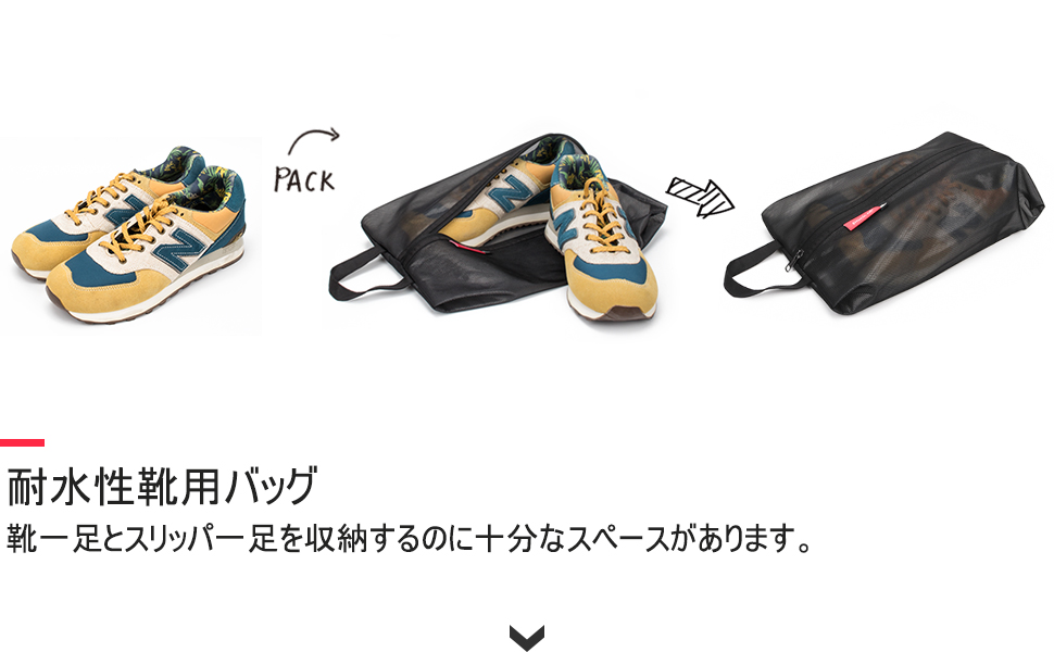 防水材質:ポリエステル素材。防水機能を持ち、 軽量で、旅行時に靴の収納に最適です。