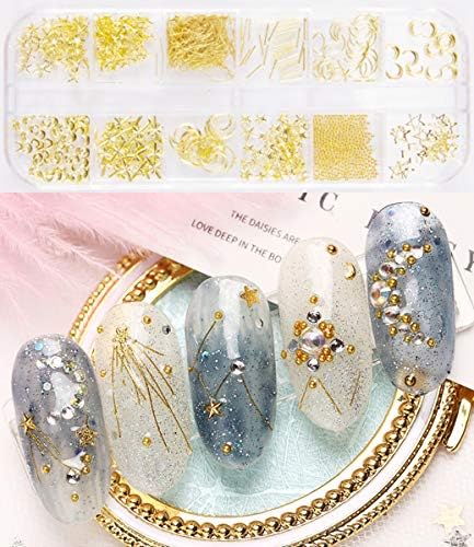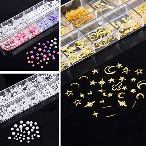 おしゃれなメタルパーツ、ホワイト、多色パールとキラキラと光るネイルストーンなどの全6種類で色んな組み合わせが出来ます。