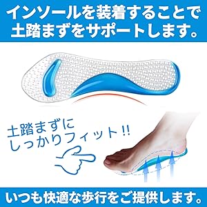 インソールを装着することで土踏まずをサポートします。土踏まずにしっかりフィット!