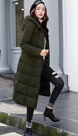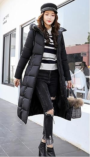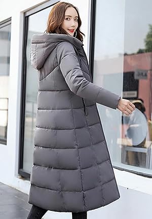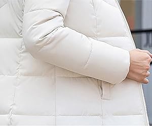 冬の寒い時期の防寒服としてゆったり暖かいフード付きの長袖ダウンジャケットです。