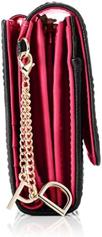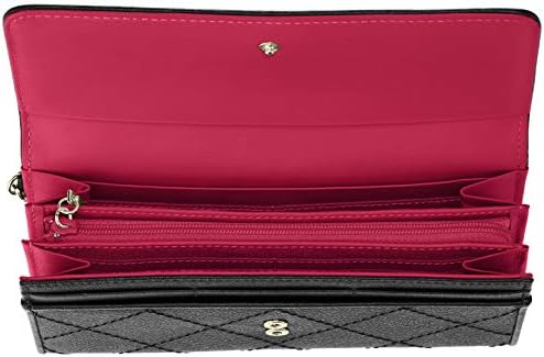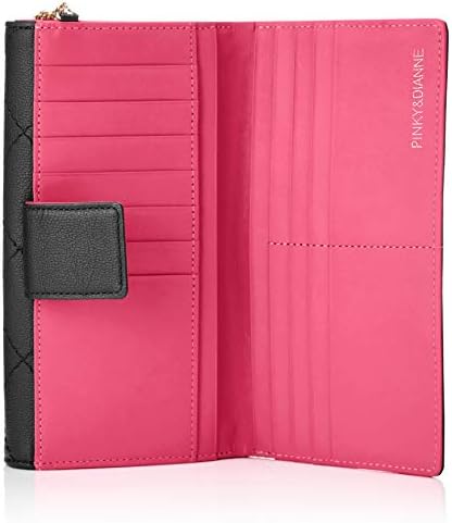 Pinky and Diane PDLW8FT1 Long Wallet (Caviar) Cowhide Leather Embossed Crystal “&” Logo Checkered Stitch with Charm