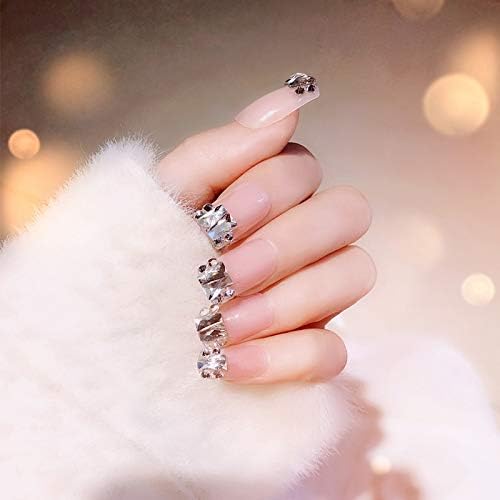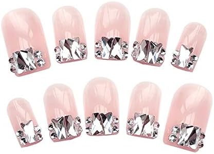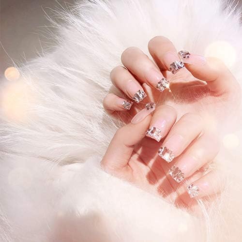 Poonikuuネイル飾り レンダリング偽のネイル ネイルアートアクセサリー 手爪 ネイル好きの女性と花嫁 美しさ優雅高級感 ダイヤ模様付き 1セット24枚 接着剤付き