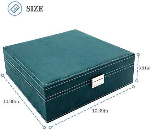 Jewelry box dimensions: 10.23″ x 10.23″ x 3.34″; Double stackable layered design with 27 different size compartments to organize all kinds of jewelry such as earrings, bracelets, ring necklaces and so on. Spacious space to keep your jewelry neat and ready to find