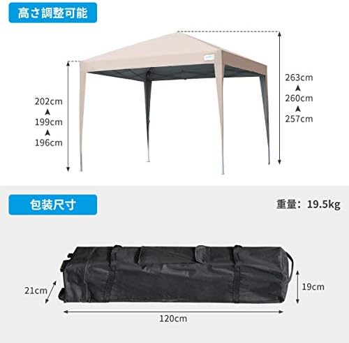 【3段階調節】テントの高さは調節可能です。必要に応じてテントの高さを調節できるため、さまざまな使用テント、屋外パーティーのピクニック、庭でのバーベキュー、ビーチでの日陰、フリーマーケットの屋台で使用できます
