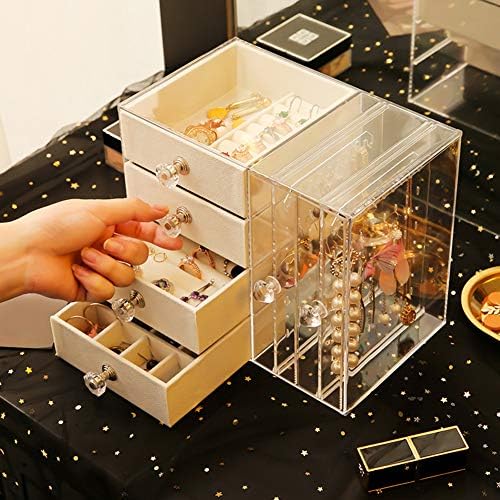 【多層構造・収納力抜群】64個丸型穴、64個縦穴、20個インデント及び仕様の異なる四つの引き出し。大容量:コンパクトサイズなのに、沢山のアクセサリーを収納できるジュエリーボックス。机の上に置きっぱなしにしているアクセサリーなどをキレイに整理。