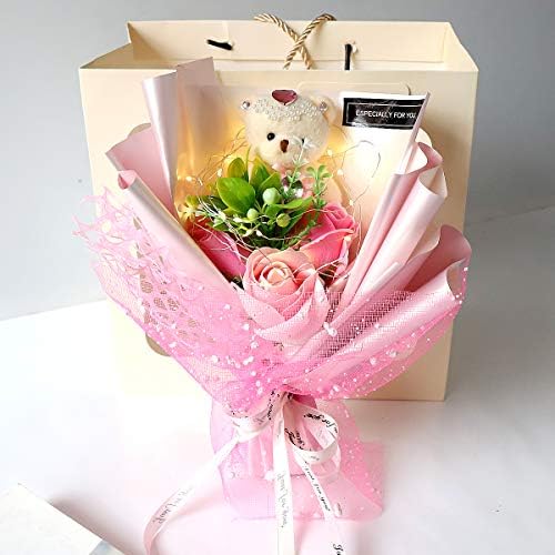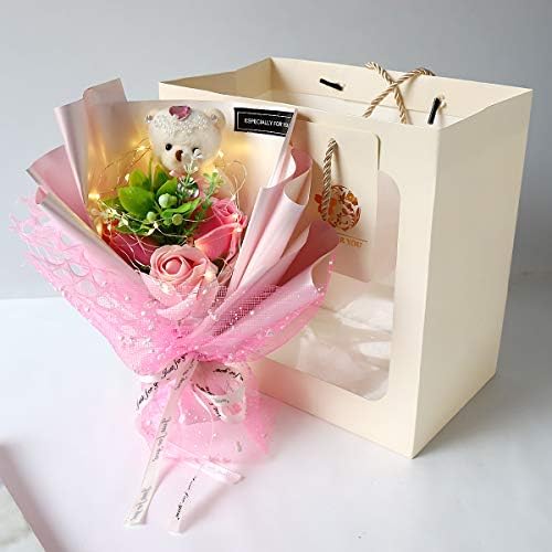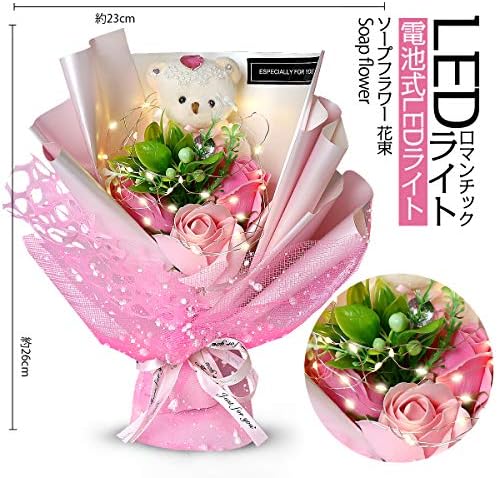 【LED付き・くま⇒絶好なギフト】 愛らしいクマさんと石鹼素材で作られた優しい香り付きの観賞用ソープフラワーを組み合わせたオリジナル花束です。お店、部屋、玄関、インテリア用など色々な場所を飾ることができ、宝石のような美しく光り、ロマンチックかつ癒しの雰囲気を作り出されます!結婚祝い・誕生日祝い・出産祝い・還暦祝い・退職祝い・発表会・記念日・・・等の プレゼントとしておすすめです。