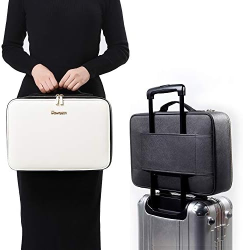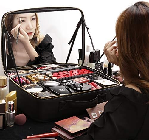 Rownyeon Makeup Box with Mirror, Cosmetic Storage, Dresser, Large Capacity, Cosmetic Storage Box, Divider, Makeup Brush Storage Case, Freestanding PU Leather, Luxurious, Tabletop Makeup Organizer Bag, Portable, Professional Makeup Artist