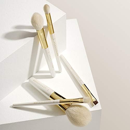 ROWNYEON Makeup Brush, Set of 5, Natural Hair, Makeup Brush, Portable, Makeup Brush Case, Highlight Brush, Teak Brush, Eyeshadow Brush, Eyebrow Brush, Makeup Storage Case, Portable, Business Trips, Luxury Gift (White)