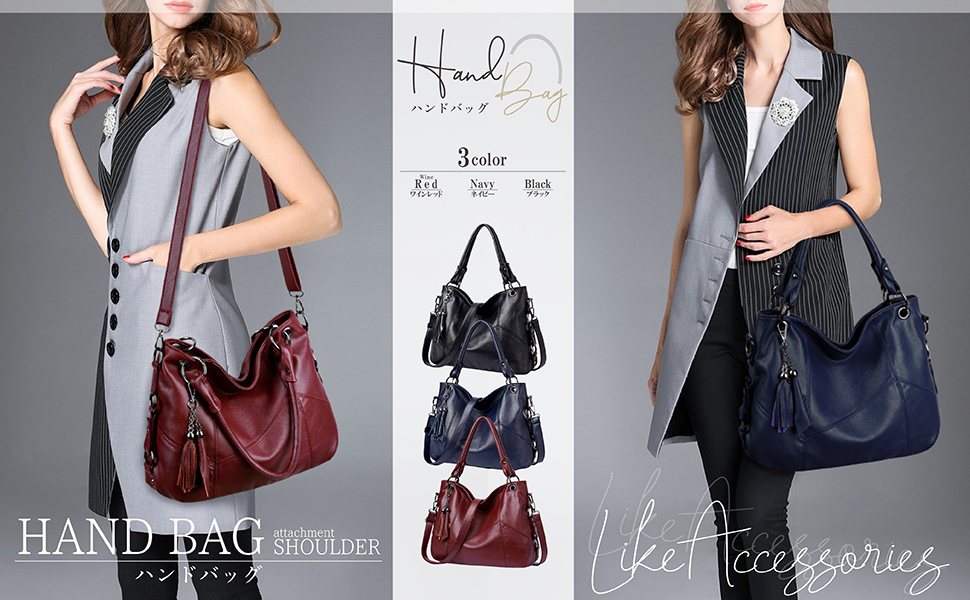 付属のショルダー紐をつけてショルダーバッグとして肩掛けや斜め掛けに、肩紐をはずして手提げ鞄に。