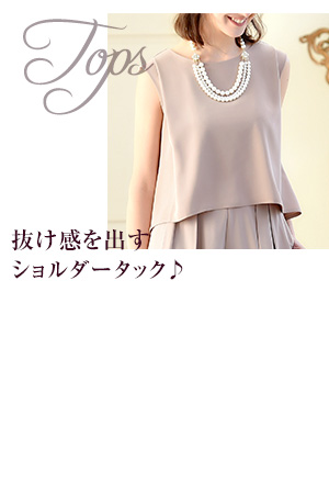 肩から流れ落ちるようなタックが、胸元にゆとりを生んでいます。