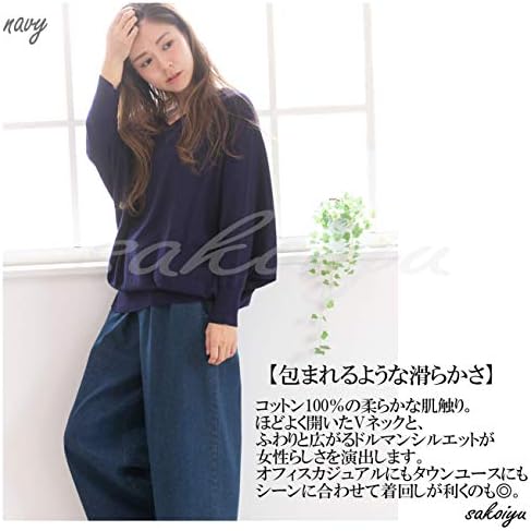 Made of 100% cotton and soft to the touch and comfortable to wear; The moderately open v-neck and dolman silhouette spreads softly and gently for a relaxed yet feminine feminine look, and can also be worn as a spring knit