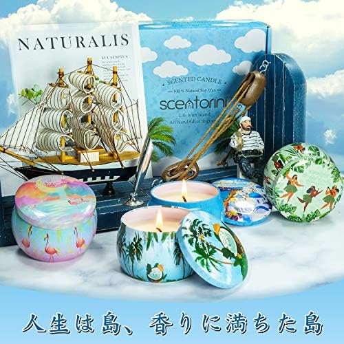 【スタイル】 四つの缶があります、香りの種類によって、缶の色が異なります。4つの島が4つの香りに対応している:モルディブMaldives−ライム,バハマBahama−月光,ハワイHawaii−モジット,サントリーニscentorini−海風