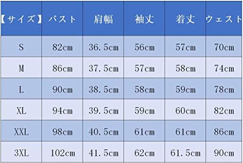 S Length:57cm Shoulder:36.5cm Bust:82cm Sleeve:56cm Waist:70cm M Length:58cm Shoulder:37.5cm Bust:86cm Sleeve:57cm Waist:74cm L Length:59cm Shoulder:38.5cm Bust:90cm Sleeve:58cm Waist:78cm XL Length:60cm Shoulder:39.5cm Bust:94cm Sleeve:5cm Waist:82cm Length:6cm Length:6cm 1cm Shoulder width: 40 .5cm Bust: 98cm Sleeve Length: 61cm Waist: 86cm XXXL Length: 61cm Shoulder Width: 41.5cm Bust: 102cm Sleeve Length: 62cm Waist: 90cm