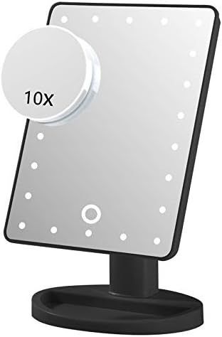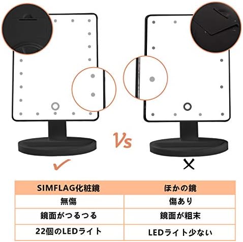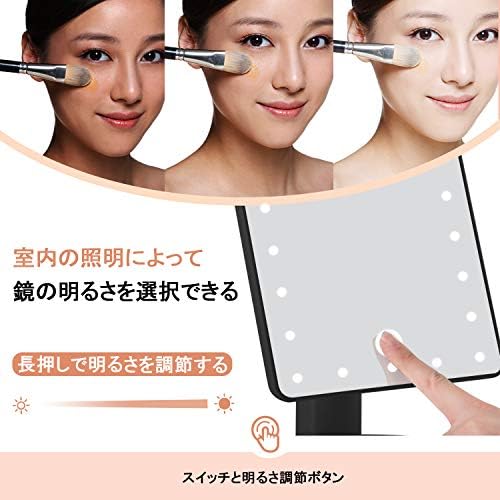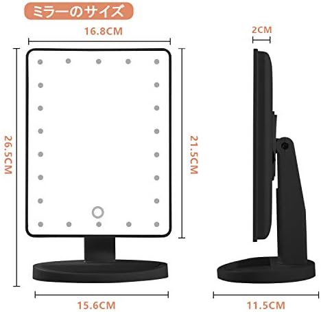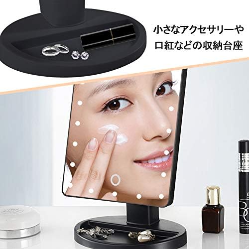 【多機能】ミラーの下部中央にタッチパネルがあり、1回タッチするだけで電源をon/offになれます。また、台座には小物を置けるスペースがあり、ブラシやアイラインなどが転がらず、便利なサポートをしてくれます