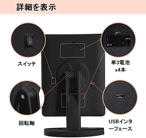 【電池orUSB給電】USB電源ケーブル(付属)または単3電池4本(含まない)ダブル電源で給電できます。外出先で電源がないときは単3電池4本で使用できる。自宅などの固定場所には付属したUSBケーブルで電源接続してLEDライト機能が利用できます。※ ご注意:USB充電でなく、給電です