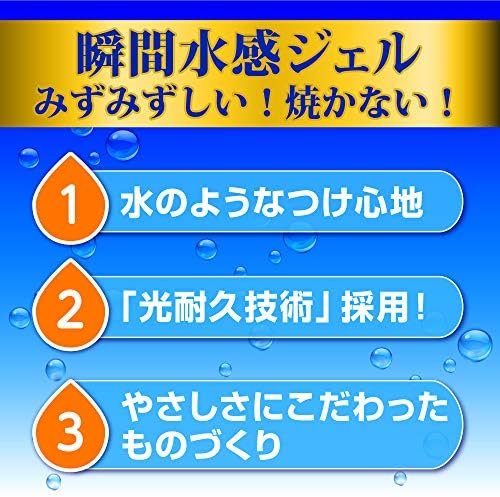 水のようなつけ心地。うるおい成分配合! やさしさへのこだわり。スキンアクアシリーズ内で最高のUVカット効果をもつみずみずしいジェルタイプの日やけ止め。光耐久技術採用! 光によるUVカット機能の低下が起こりにくくなる独自成分配合。汗・水に強いスーパーウォータープルーフ。石けんで落とせます。顔・からだ用で、化粧下地にもオススメです。たっぷり使える大容量ポンプタイプ。 SPF50+/PA++++。
