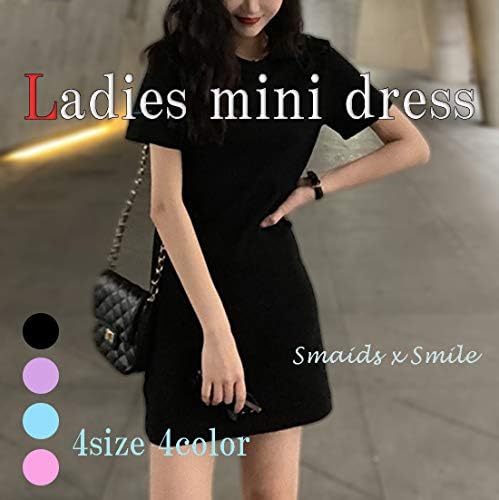 Smaids x Smile Women’s Mini Dress, Short Sleeve, Long Length, Simple, Plain, Tight, Simple Long T-shirt.